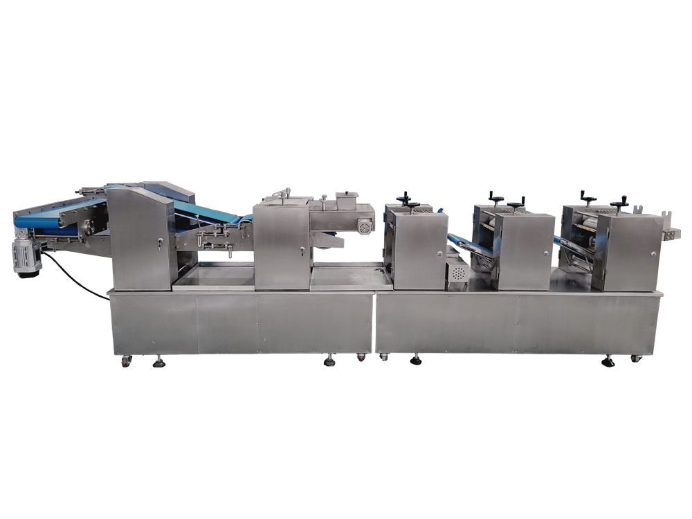 3、設(shè)備為變頻控制,每一道壓輥都采用單機驅(qū)動,通過測距傳感器,實現(xiàn)自動面帶張緊控制,多輥聯(lián)動??焖佥p松地制作大量面皮,提高生產(chǎn)效率。